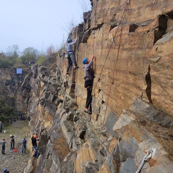 Er zijn ook mogelijkheden voor het inrichten van highlines. Het klimgebied is vanwege de relatief makkelijke en overzichtelijke routes goed geschikt voor de eerste stappen in de rots. Een woord van waarschuwing: de rots in een recent ingerichte steengroeve is nog niet volledig gestabiliseerd en je kan de komende jaren nog de nodige losse rots, vieze grepen en potentieel gevaarlijke situaties tegenkomen.