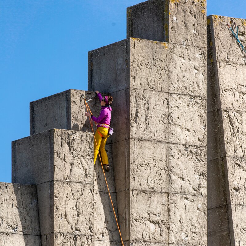Je vind twee soorten routes op de wand: routes met kunststof klimgrepen op de oostzijde en routes waarvan de grepen de structuur van de betonnen wand zelf zijn op de westzijde. De routes die gebruik maken van de rotsstructuur zijn qua klimstijl vergelijkbaar met het klimmen in de rots. Was deze muur maar groter en hoger!