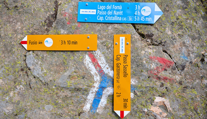 In de meeste Alpenlanden zijn de paden en routes in de buurt van het dal goed gemarkeerd. Op kruisingen en startpunten van wandelroutes staan doorgaans wegwijzers met tijdsaanduidingen en als tussenmarkering worden verfstrepen op stenen en bomen langs het pad aangebracht.