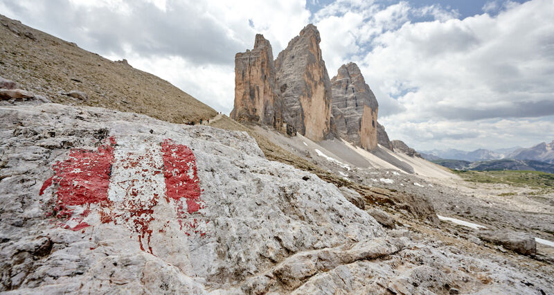 Afbeelding 3: De markering van een alpiene wandelroute in de Italiaanse Dolomieten.