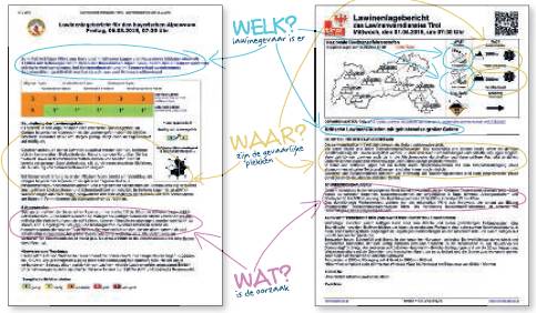Kun jij het lawinebericht interpreteren? Voor off-piste wintersporters is het lawinebericht de belangrijkste bron van informatie over de actuele omstandigheden buiten de piste. Deze berichten worden opgesteld door de lawinediensten van de verschillende Alpenlanden en zijn opgebouwd uit 3 W’s: