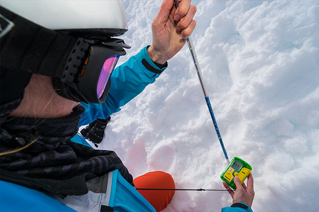 Het opsporen van lawineslachtoffers is iets wat je ieder jaar voorafgaand aan het toerskiseizoen weer moet oefenen. Dat doe je in de praktijk door een lawinepieper in te graven en die vervolgens te gaan zoeken.