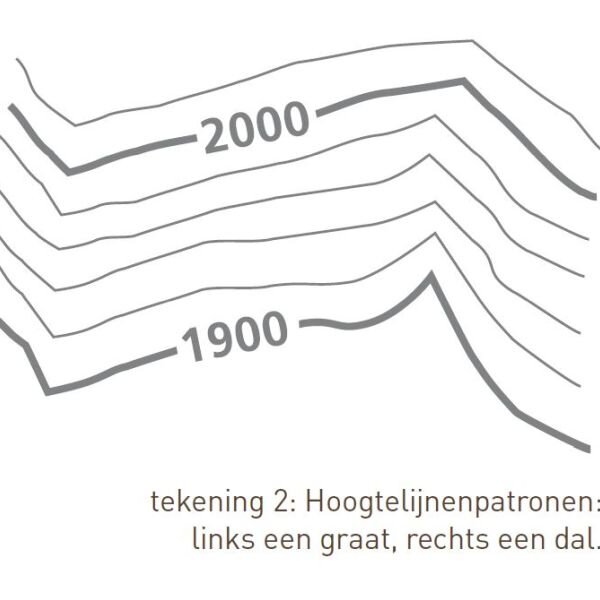 Om op een platte kaart het reliëf en de hoogte te kunnen weergeven, worden hoogtelijnen ingetekend. Ook worden soms schaduwen toegevoegd om een driedimensionaal effect te creëren. Herkenbare punten zoals pasovergangen en bergtoppen hebben een hoogteaanduiding. Hoogtelijnen verbinden punten met dezelfde hoogte, deze staan op de kaart als doorgaande lijnen. Het verloop van de hoogtelijnen schetst de aard van het terrein, waardoor je kammen, geulen, plateaus en steile wanden kunt herkennen. De afstand tussen de hoogtelijnen bepaalt de steilte van het terrein: hoe dichter ze bij elkaar staan, hoe steiler het is. Als je regelmatig met kaart de bergen intrekt, leer je de steilte in te schatten. Op Zwitserse en Oostenrijkse kaarten is de afstand meestal 20 meter, en op de Franse IGN kaarten 10 meter. Maar het kan ook 50 meter zijn. In dit laatste geval zijn hoogteverschillen van minder dan 50 meter niet weergegeven, wat het oriënteren lastig kan maken. Hoeveel de afstand tussen de hoogtelijnen bedraagt, staat meestal in de legenda of op de kaartrand. Elke vijfde hoogtelijn (100-meter-lijn als elke hoogtelijn 20 meter aangeeft) is iets dikker gedrukt en heeft een hoogtegetal. De onderzijde van dit getal wijst altijd naar het dal, zodat je weet wat onder en boven is. Met een gradenboog of een hellingmeter kun je de steilte van het terrein meten.