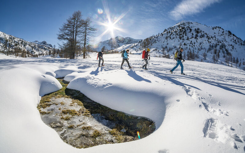 Veilig sneeuwschoenwandelen heeft minder te maken met het lopen zelf en meer met de route die je kiest en de omstandigheden die er op dat moment zijn. Wil je het jezelf makkelijk maken, kies dan voor routes die zijn geprepareerd. Liefst in gebieden met weinig hoogteverschillen. Het is uitdagender qua veiligheid als je hoger in de bergen komt en van de gebaande paden afgaat. Heb je nog geen ervaring of kennis in de sneeuw, dan ga je met een berggids of IML-er op pad. Bedenk hierbij dat skiën op pistes gebeurd, daarmee heb je nog geen ervaring opgedaan in off-piste sneeuw.