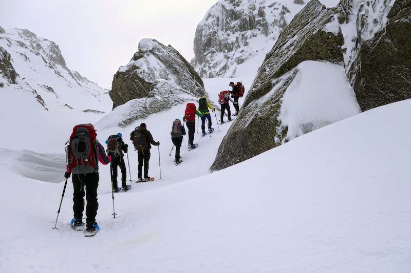 Afhankelijk van de tocht die je gaat maken heb je een grotere of kleinere rugzak nodig. De maat van je rugzak is vaak groter dan je in de zomer meeneemt. In de winter heb je meer kleding en meer spullen mee. Bij dagtochten is een rugzak van 30 liter meestal een goede keus. Voor een huttentocht heb je eerder zo’n 40/50 liter rugzak nodig. Het is handig als je rugzak bevestigingsmogelijkheden heeft om je sneeuwschoenen vast te maken, maar dat kan ook met een apart spanbandje. Er zijn rugzakken met speciale vakken voor de lawine drie-eenheid, zodat je daar in geval van nood snel bij kunt. Tot slot zijn er rugzakken met lawineairbags. Dat is een systeem dat in je rugzak zit. In geval van een lawine kun je die activeren en worden er grote ballonnen opgeblazen. Het nadeel van deze rugzakken is dat ze zwaarder zijn.