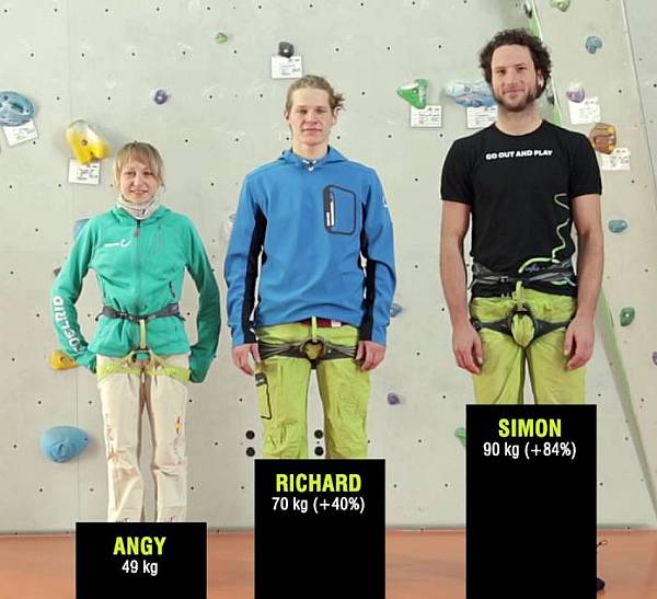 Een hele simpele en effectieve methode om problemen bij het zekeren bij gewichtsverschil te voorkomen is zorgen dat zekeraar goed geoefend is in het houden van (onverwachte) vallen. Dit geldt zowel bij het topropen als bij het voorklimmen. Hoe meer ervaring een zekeraar heeft in het houden van verwachte en onverwachte vallen, hoe minder groot de kans dat hij verrast wordt door een onverwachte val en bij het uit balans raken het touw los laat. Natuurlijk is het opvangen van klimmers al geoefend bij de cursus indoor toprope of indoor voorklimmen. Maar het kan niet vaak genoeg gezegd worden: oefen het opvangen van onverwachte vallen tot in den treure - en helemaal als het om een zwaardere klimmer gaat dan de zekeraar.