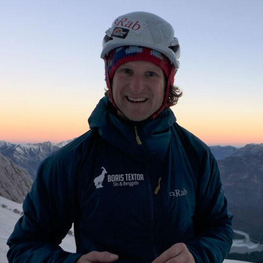 Niek de Jonge is allround klimmer die zich thuis voelt in rots, ijs, aid en alpien terrein. Niek is Industrieel Klimmer (Rope-Access, IRATA) en geeft trainingen in