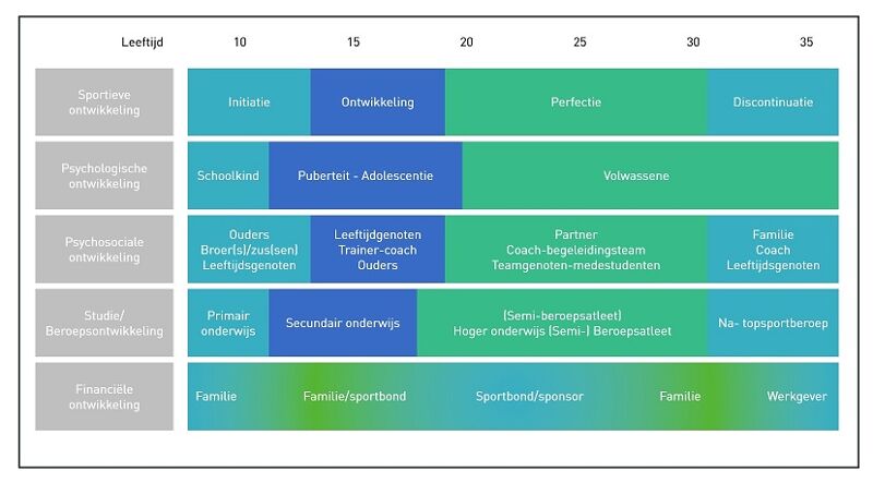 Overzicht van de holistische ontwikkeling van de sporter gedurende de sportcarrière (Wylleman et al., 2011)